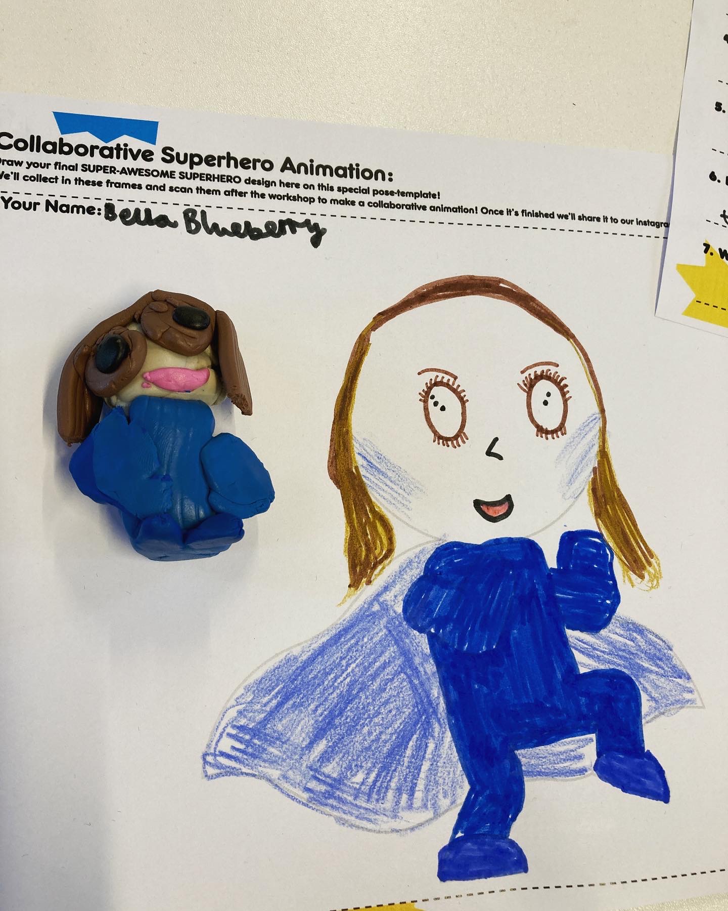 After establishing their character’s identity, name, superpowers, and favourite snacks; the kids drew them and made 3D versions with modelling clay.